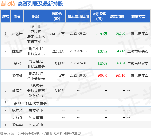 吉比特的高管列表及最新持股情况如下:盈远期策略