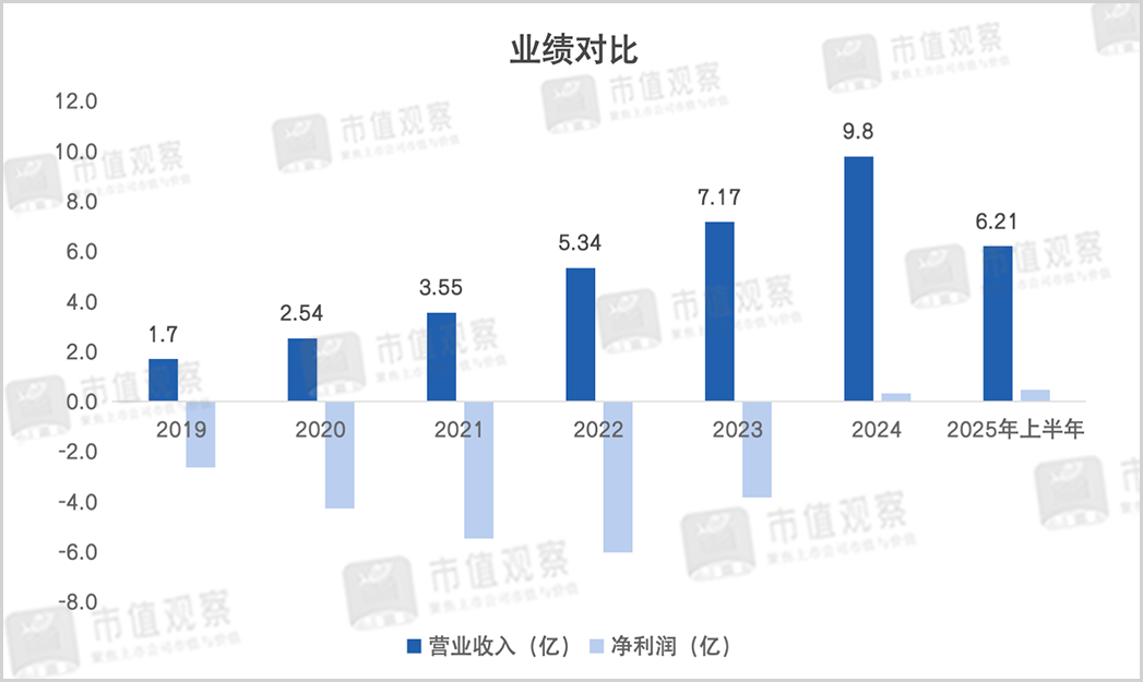 在2019年至2024年间,尽管百奥赛图的营收增长迅速,从1.7亿增长到了9.8亿,但在前五年间均处于亏损状态,合计亏损金额达22.22亿。