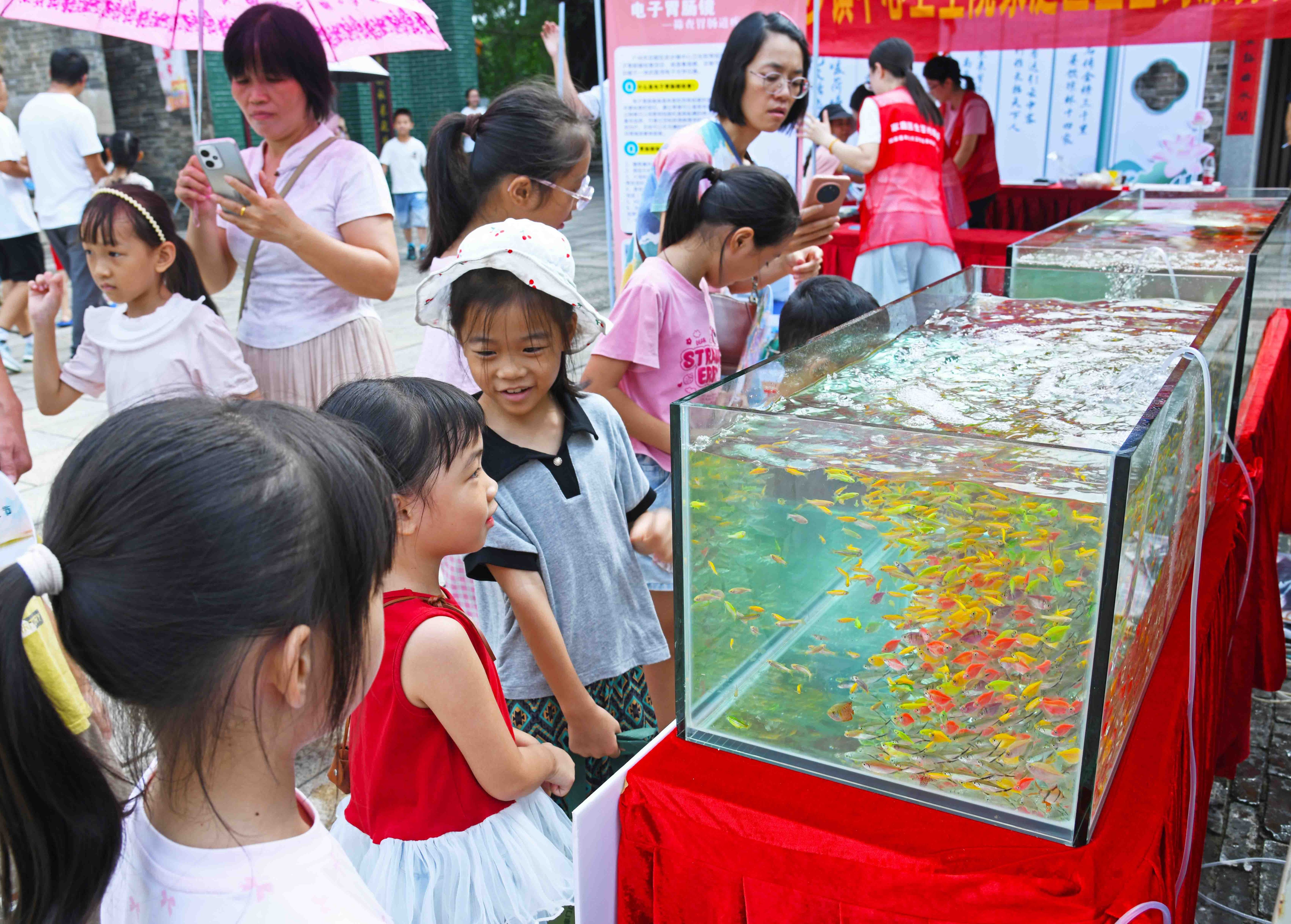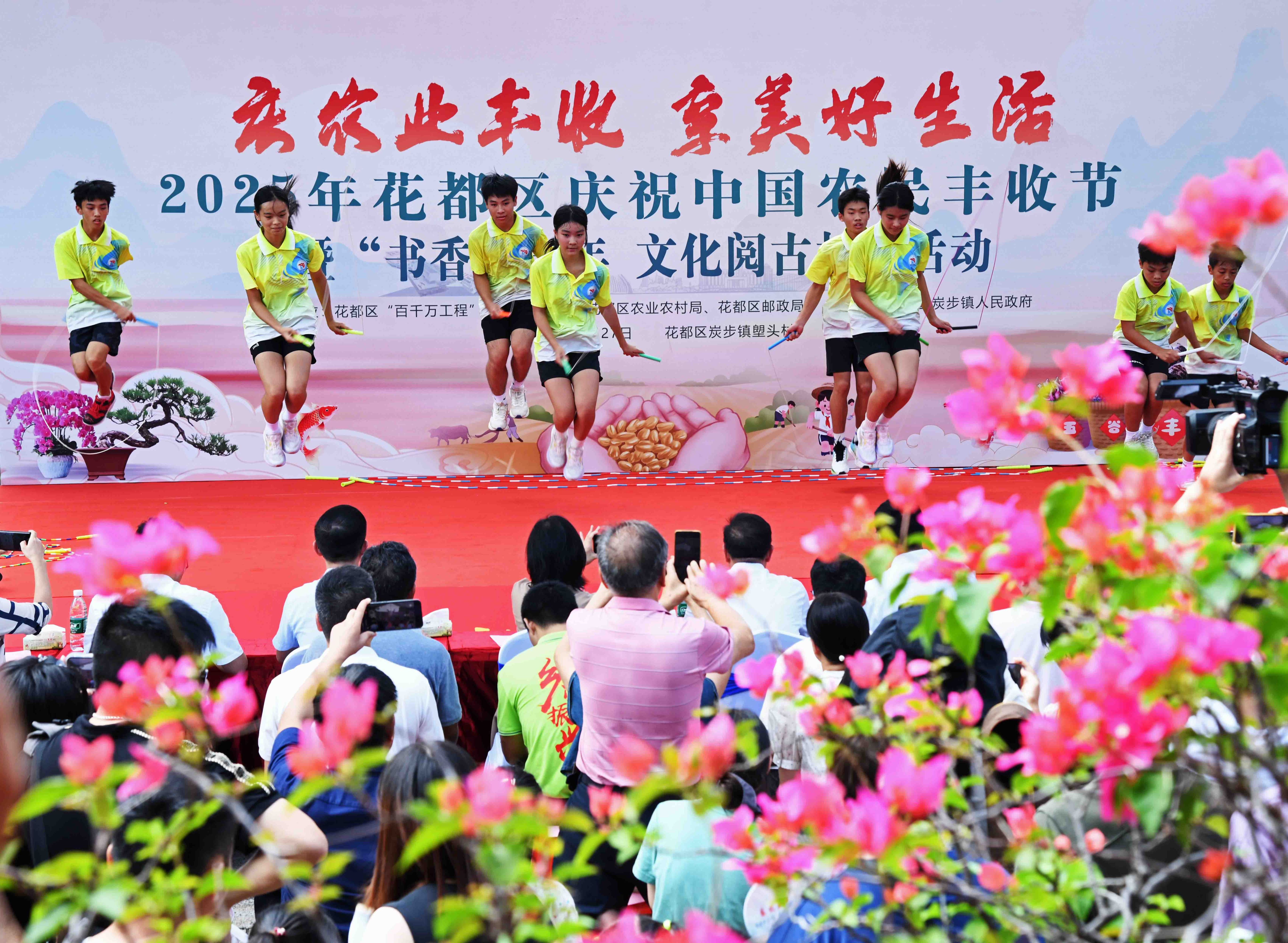 活动在欢快的醒狮表演中开场,现场还举行了炭步镇观赏鱼合作社揭牌、全民阅读赠书仪式。来自花东镇七星小学的运动健儿们为现场观众带来了精彩的跳绳表演等,现场掌声不断、气氛热烈。