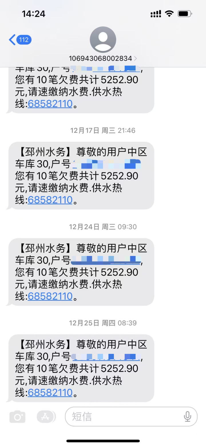 1月8日,冯先生告诉记者,此前与他联系的邳州市水务公司工作人员称,水费中有两笔可能是大车压坏漏水导致的,然而,去年自己去水务公司为车库申请用水,也没人和自己说欠费一事。冯先生认为,既然是漏水导致的欠费,自己作为用户,就不应该承担由此产生的水费。