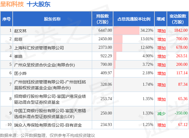 根据呈和科技2025年中报公布的十大股东详情如下: