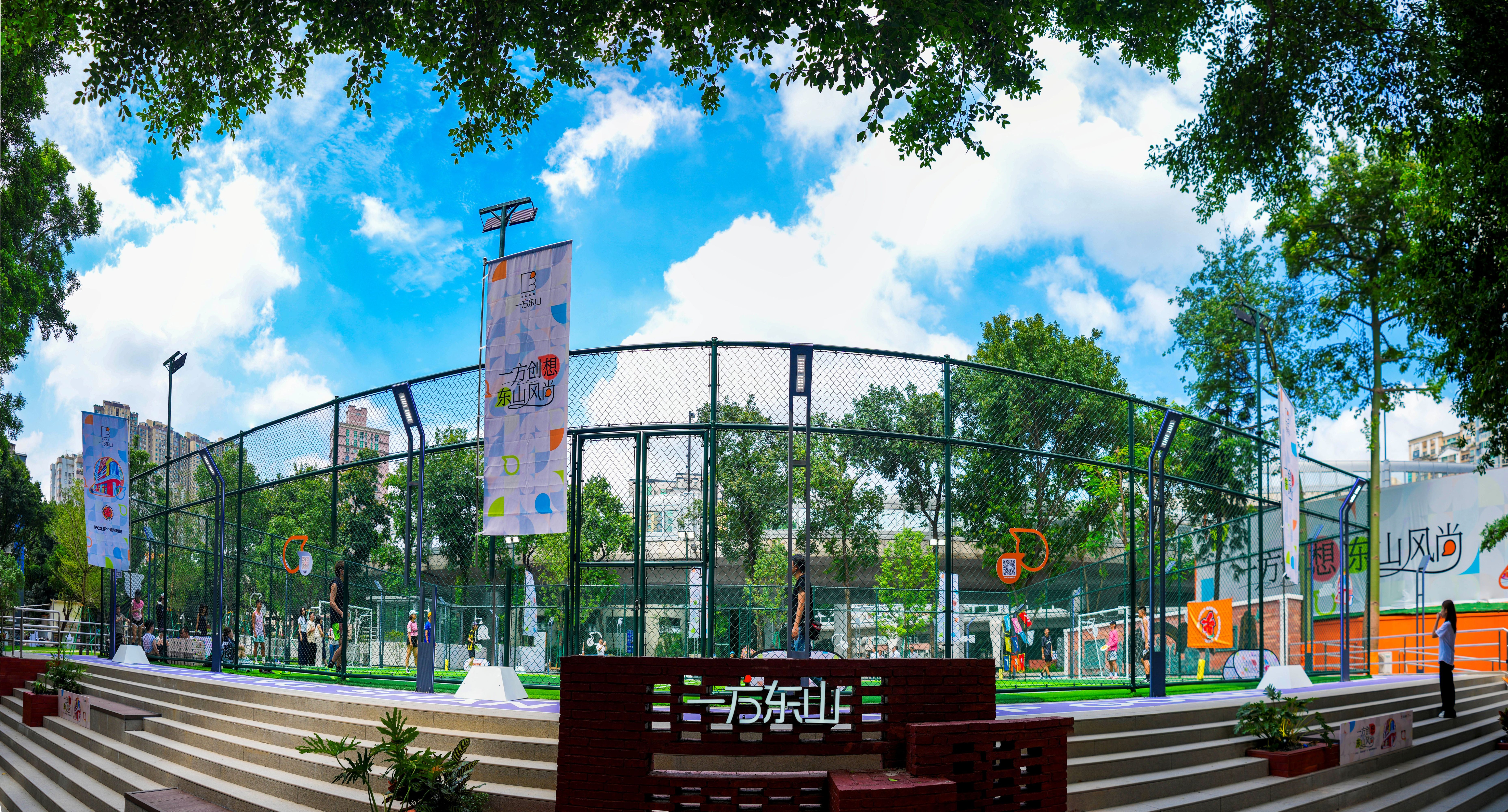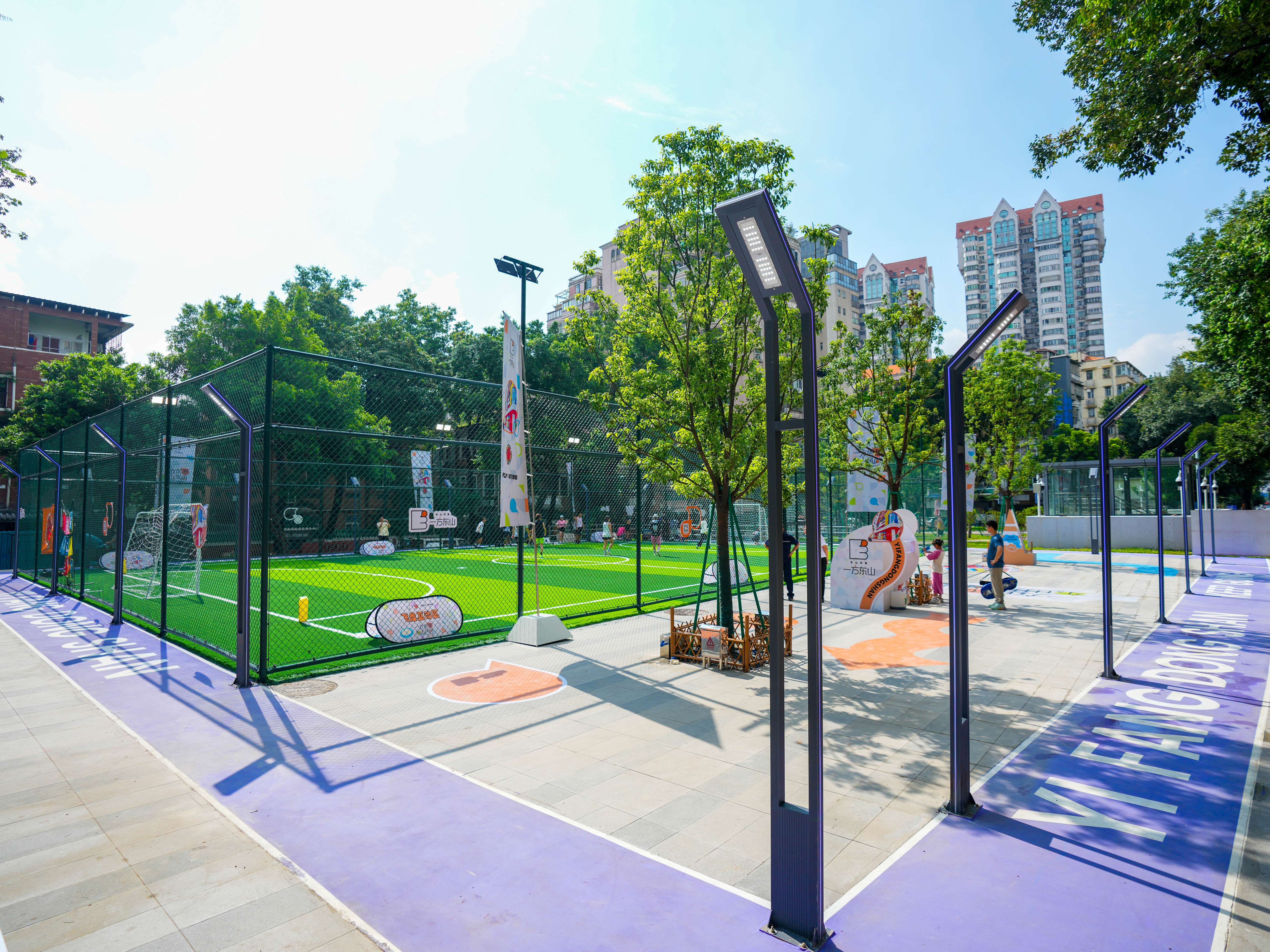 均益广场则是原1958年建成的东山体育场,曾为广州最具烟火气的“平民球场”。此次升级改造,借势“十五运”契机,打造集绿化景观、运动休闲、社群社交于一体的开放式商业载体、公共空间,既保留了城市记忆,又完善了街区配套功能。